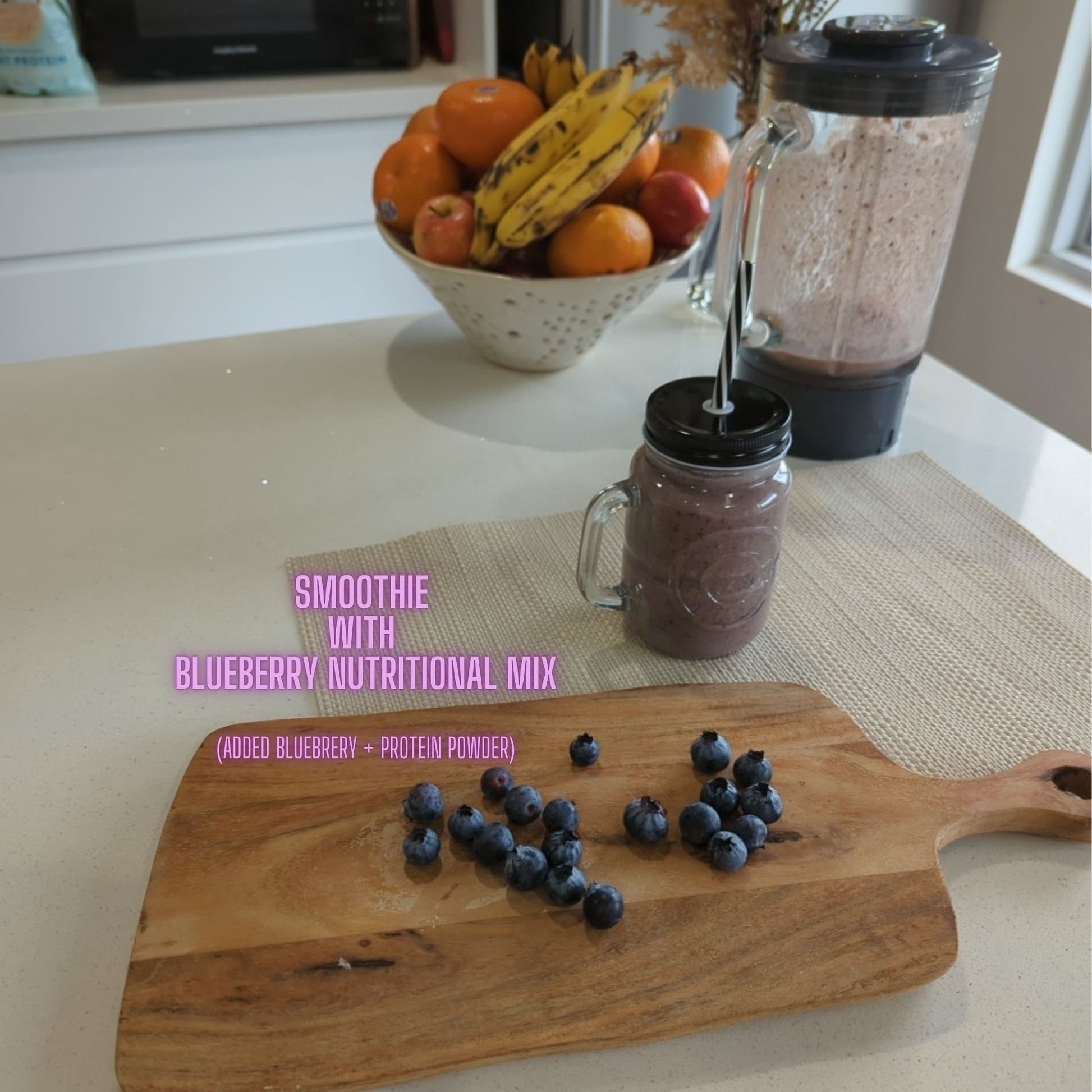 Real blueberries, nuts, seeds & superfoods — a clean, high-fibre smoothie mix balanced for protein, healthy fats & carbs.